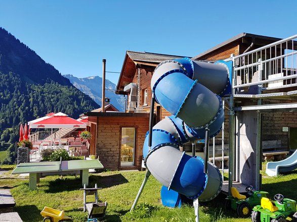Im Sommer bietet unser Spielplatz viele verschiedene Aktivitäten für die grossen und kleinen Kinder.